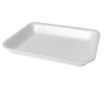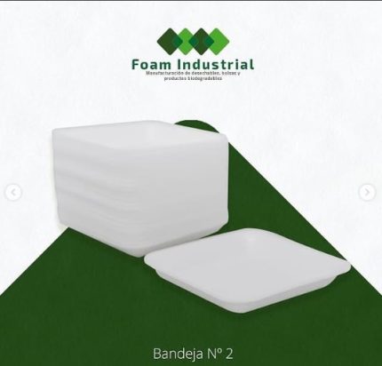 Bandeja 2P Foam Plastifar, ligera, resistente y desechable, ideal para alimentos frescos o preparados. Perfecta para negocios y eventos.
