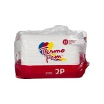 Bandeja 2P Foam Termo, liviana, resistente y desechable, ideal para alimentos frescos o preparados. Perfecta para negocios de comida.