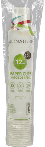 Vaso de Papel 12 oz BioNature, ideal para café caliente, ecológico, resistente y de excelente calidad. Perfecto para cafeterías y eventos.