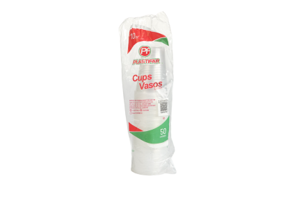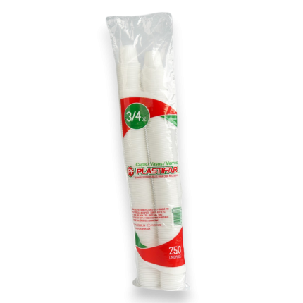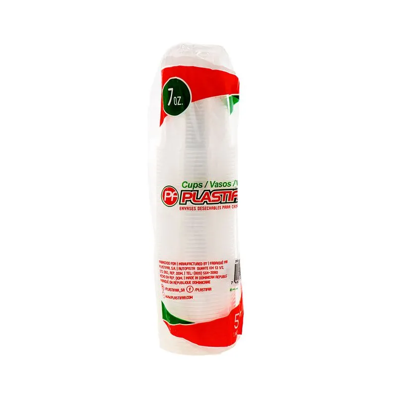 Vaso Plástico PP de 7 oz Plastifar, resistente, ligero y desechable. Ideal para bebidas frías en eventos y negocios.